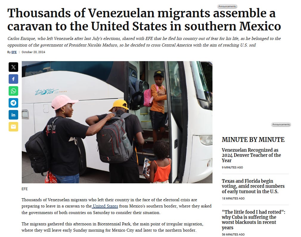 (Original article in Spanish) Thousands of Venezuelan migrants assemble a caravan to the United States (elnacional.com)