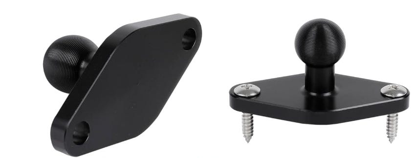 I did find the mount not very helpful since it is designed to be attached to the top of the dashboard or the windshield. One of my quirks is that I absolutely hate anything that creates a blind spot and the face of the dashboard did not have enough clear space for the suction cup of the mounting system. I looked online and found the Aluminum Alloy AMPS to 17mm Ball Adapter, Drill Mount Ball Plate Base which I screwed into the dashboard.