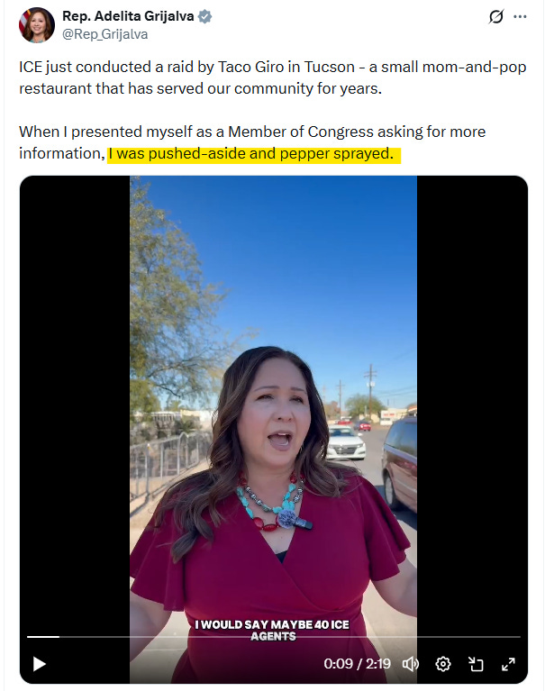 The officer does use pepper spray, but she does not get any because she was not near the cone. She is not affected by even a whiff of it because she is talking and moving forward addressing the agents. And the closest to being dosed is that somebody shot a pepperball to her feet and she kept walking which demonstrated it had no effect.