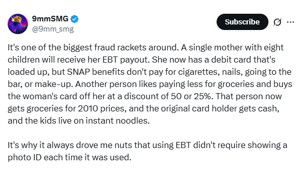 Ladies and gents, we are talking about miscreants that prostitute themselves and their kids to maintain a lifestyle at taxpayers’ expense. They do not think twice about defrauding you or me as long as they can get the latest I-Phone and the acrylics at the end of their fingers.