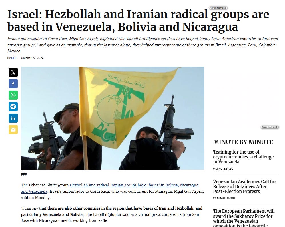 Israel: Hezbollah has bases in Venezuela, Bolivia and Nicaragua (Original link in Spanish)