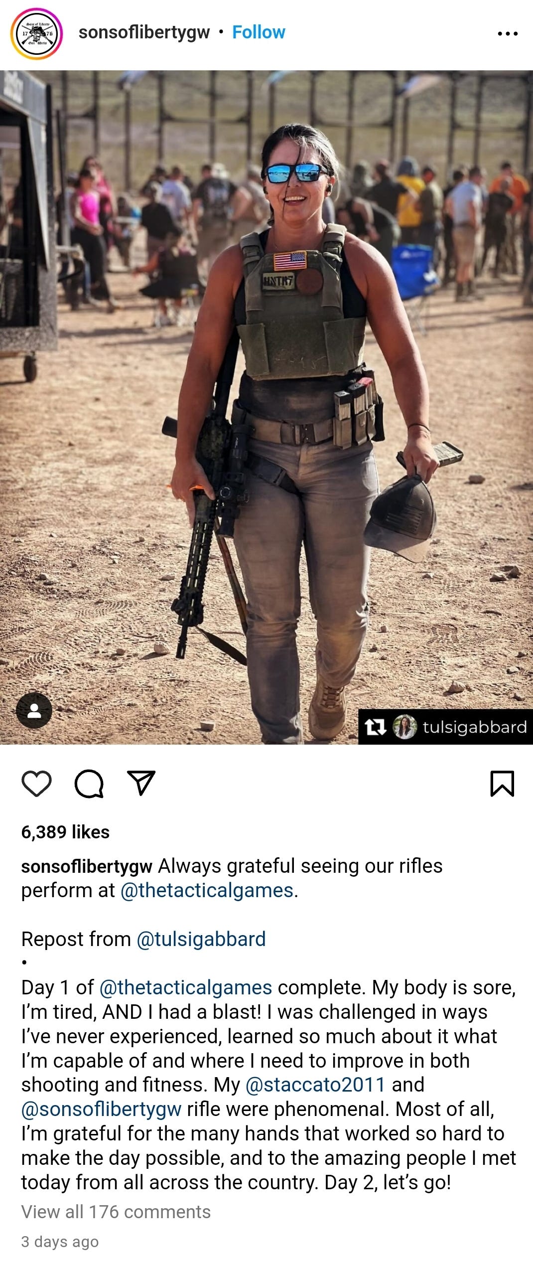 Things I didn't have on my 2024 Bingo card is the Democrat former Congresswoman from Hawaii becoming a tactical games gun bunny.