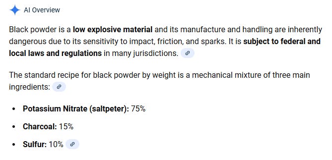 Written recipe for black powder is verbotten! (U.K again)